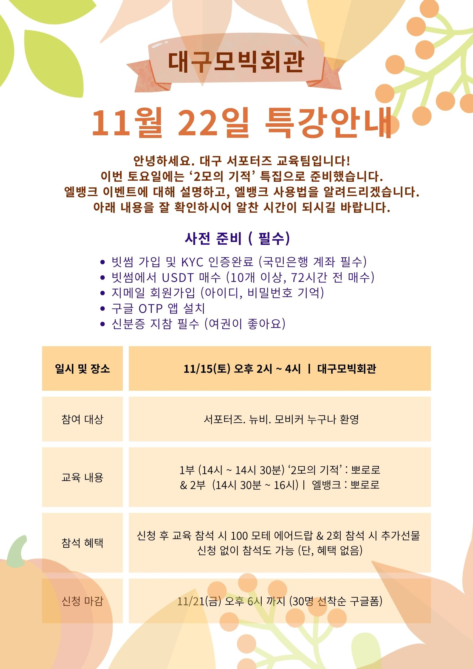 📣 대구모빅회관 교육팀 11월 4주차 특강안내